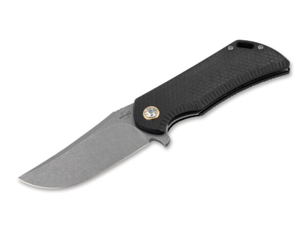 Nůž Böker Plus AK-101 2.0 z řady Kalašnikov je plnohodnotný nůž pro náročné úkoly, je proto vhodný pro taktické i outdoorové použití. Rukojeť vyrobená z vysoce odolného hliníku se díky strukturovanému povrchu, typickým příčkám a speciálnímu tvarování pro prsty bezpečně drží v ruce. Prolisy v oblasti opěry palce navíc zaručují maximální kontrolu při práci. Inovovaná verze 2.0 nože je vybavena černou lakovanou čepelí typu drop-point z materiálu D2, kterou lze snadno otevřít i v rukavicích pomocí flipperu nebo kolíku pro palec, na který lze dosáhnout z obou stran. Rozbíječ skla na konci rukojeti dokonale rozšiřuje možnosti použití. Ocelové vložky umístěné pod střenkami rukojeti dodávají celé konstrukci potřebnou stabilitu. Kapesní nůž se zamyká pomocí spolehlivé pojistky linerlock.