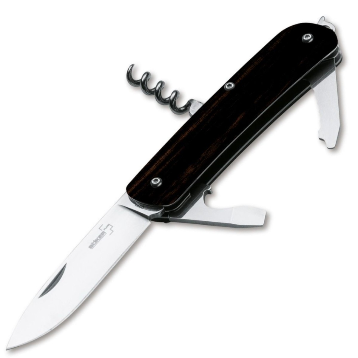 Historie nožířského závodu Böker začala v roce 1869 nožem Böker Sportmesser, předkem všech moderních multifunkčních kapesních nožů. Po téměř 150 letech úspěšné historie modelu nastal čas přenést tento tradiční koncept do současnosti. Modernizovaná verze je založena na masivních ocelových deskách, díky čemuž je nůž extrémně odolný. Střenky z prémiového ebenového dřeva dělají z poměrně technického nástroje Böker Plus Tech Tool elegantní pánský nůž. Tmavé dřevo zdůrazňuje eleganci a styl a nůž je proto naprosto vhodný k nošení v kapse u saka nebo u vesty. Nůž je vybaven velkou čepelí, hrotem na rozbití skla a otočnou sponou. Nůž je vybaven velkou čepelí (12C27) a následujícími nástroji (4Cr13): hrotem na rozbití skla, velkým šroubovákem s otvírákem na lahve a ohýbačem/ odizolovačem vodičů, malou zoubkovanou čepelí s koncovkou ve tvaru šroubováku, vyklápěcím okem pro šňůrku na nošení, vývrtkou, sponou.
