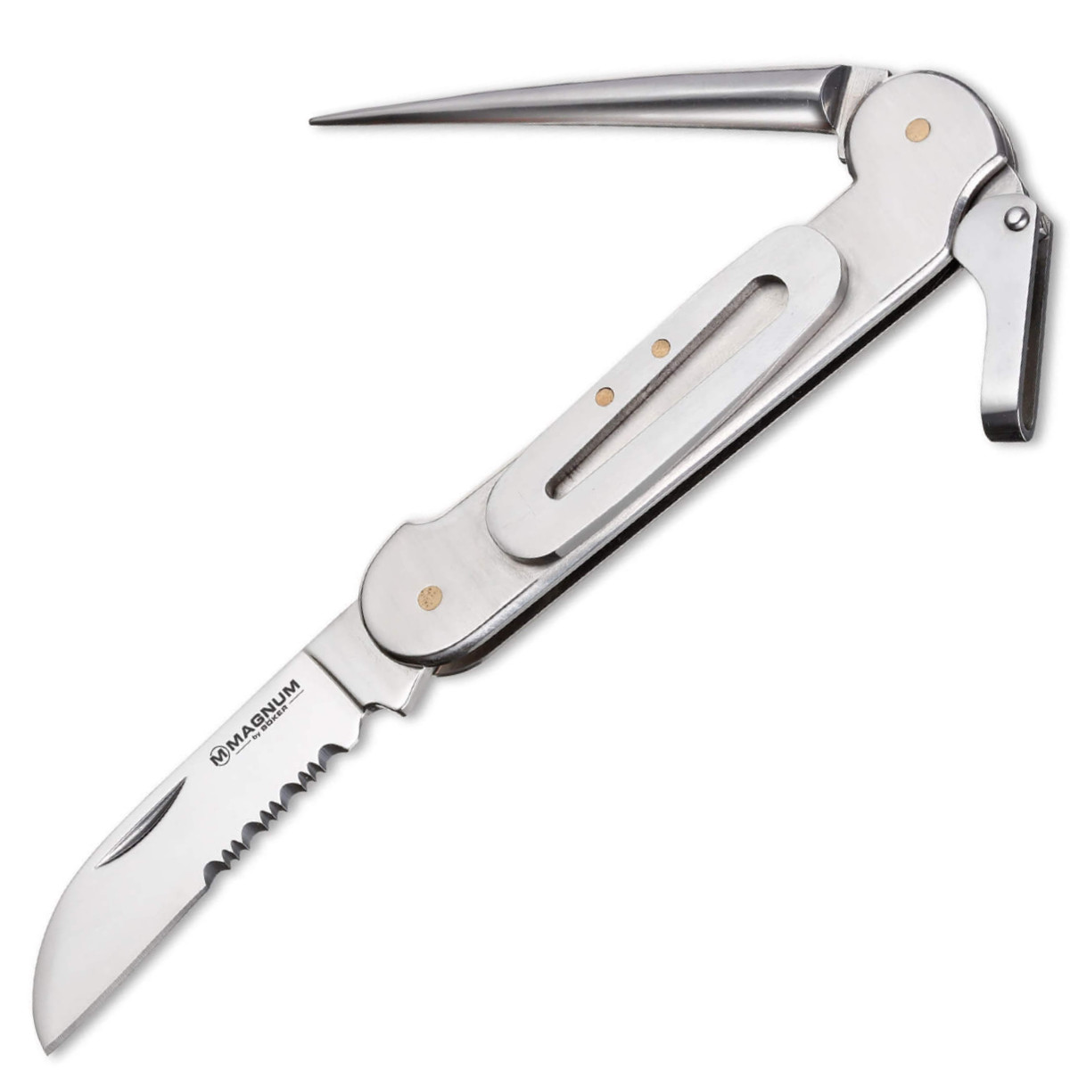 Optimální nůž pro všechny, kteří preferují trávit svůj život nebo volný čas na otevřeném moři. Částečně zoubkovaná čepel vyrobená z oceli 440A bez námahy přeřeže lana, šňůru nebo síť. Uzamykatelný marlínový bodec výrazně usnadňuje uvolňování pevných uzlů. Na rukojeti námořnického nože je namontován otvírač pout. Pro ochranu nože před nedobrovolným ponorem je zde otvor pro šňůrku.