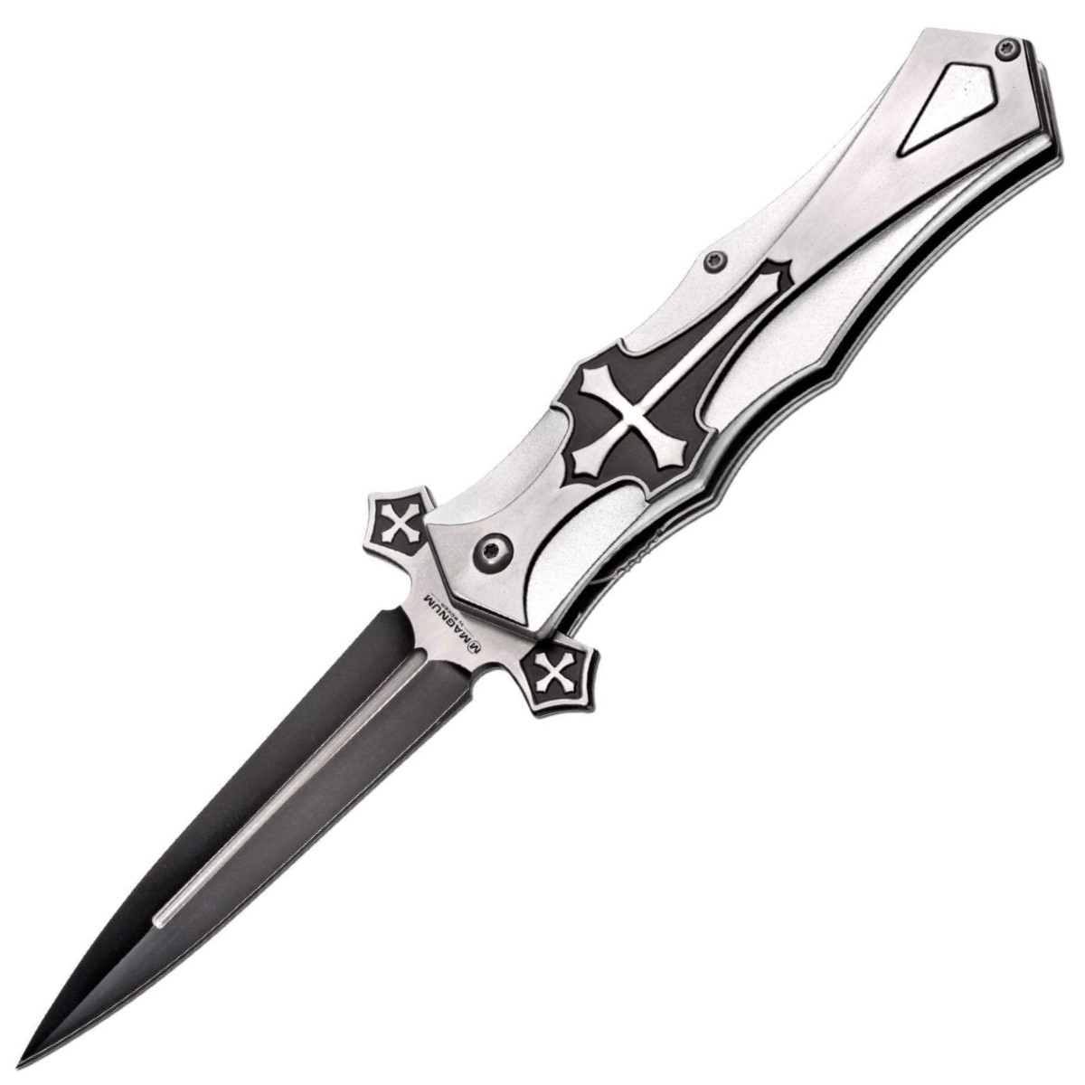 Působivý design nože s extravagantním vzhledem. Čepel z nerezové oceli 440 má ušlechtilý dvoubarevný povrch s pojistkou Linerlock. Oboustrannou ochranu ruky zdobí na obou stranách křížky, stejně jako rukojeť vyrobenou z lehkého hliníku. Součástí nože je klip na uchycení.
