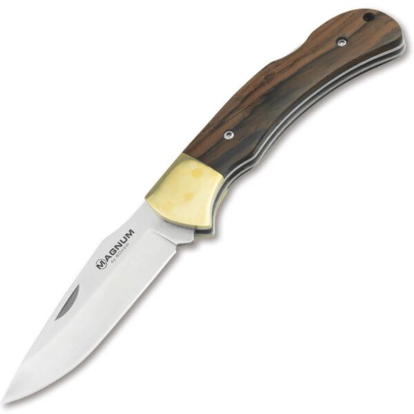 Magnum Farmer’s Friend je klasický pracovní nůž střední velikosti kapesního nože, který je vybaven nerezovou čepelí z nerezové oceli 440A. Satinovaná čepel se otevírá řezem hřebíku a zafixuje se na místě pomocí robustního zámku. Díky svému plochému a přímočarému designu zaujme Farmer’s Friend vysokou užitnou hodnotou, zatímco elegantní rukojeť ze santalového dřeva podtrhuje tradiční charakter obouručního nože. Ozdobné čelisti jsou vyrobeny z mosazi.