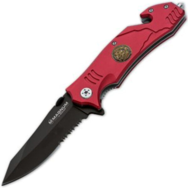 Tato velmi úspěšná řada záchranářských nožů je věnována bezpečnostním silám, které jsou často v nebezpečí po celý den a často riskují své životy pro ostatní. Vybavení: hrot na rozbití skla, řezač na bezpečnostní pásy, kapesní klip a silná a odolná čepel z nerezové oceli 440. Černě potažená reverzní čepel Tanto s flipperem, částečně zoubkovaným ostřím a asistovaným otevíráním pomocí pružiny (Assisted Opener). Anodizovaná červená rukojet‘ nese znak hasičů. Záchranářské nože Magnum jsou plně funkční a připraveny k použití, avšak nejsou určeny pro každodenní náročné použití profesionálních záchranářů.